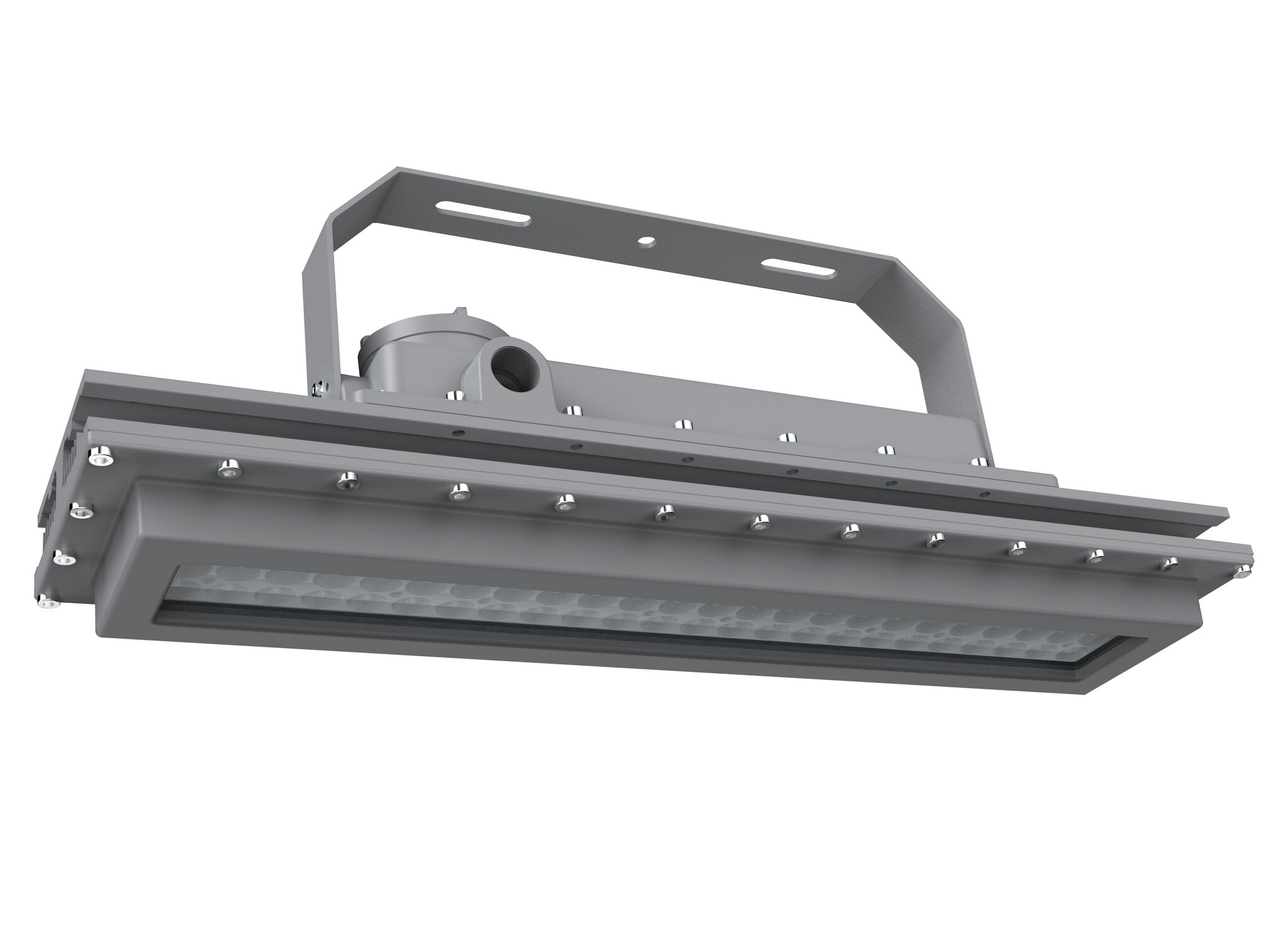 De ATEX Tri-proof LED armatuur wordt geleverd met bevestigingsbeugels waarmee het armatuur eenvoudig gemonteerd kan worden. Met deze beugel kan de hoek van de armatuur ook eenvoudig worden bijgesteld.