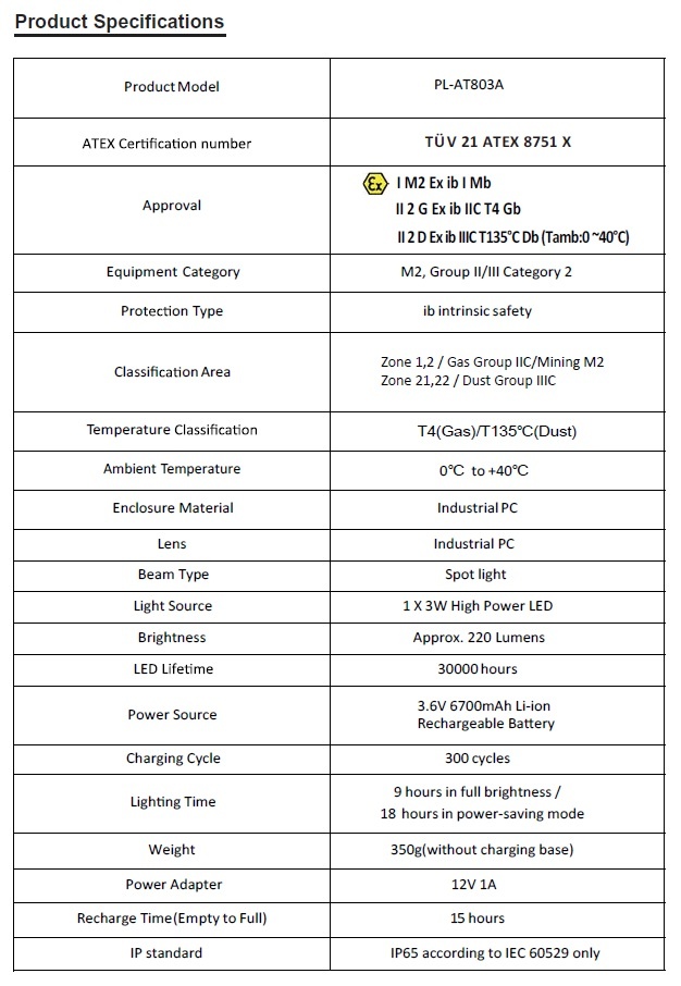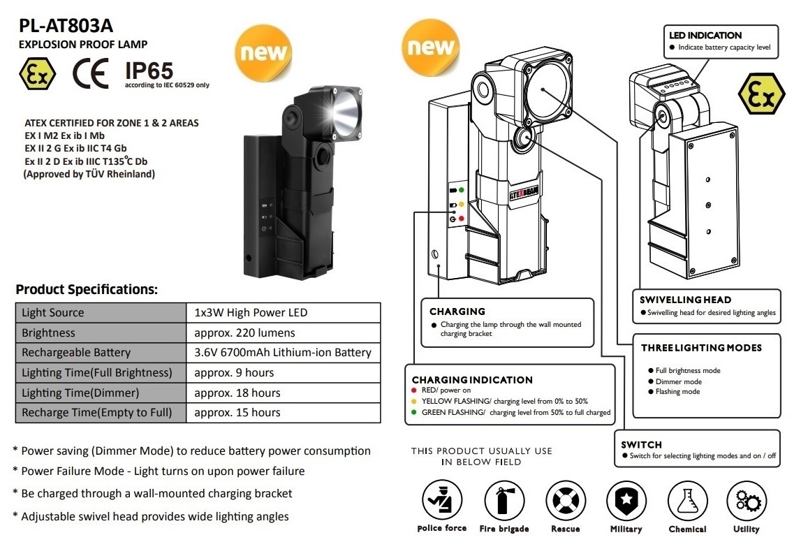 Atex verlichting - Werklamp met Accu - 3W - PL-AT803A